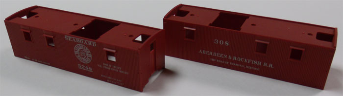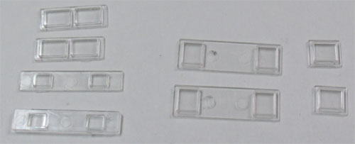 Part Available: (images below) 1. Frame with detail, weight and trucks $22.00 2. Roof with cupola, wood walk and smoke stack $8.00 3. Roof, cupola 2, wood walk, windows, cupola grabs $12.00 4. Cupola with windows and grab irons $6.00 5. Body Shell (1) $6.00 6. Grab Irons $6.00 7. Clear Window set $4.00 8. Smoke Stacks (4) $1.00 9. Trucks $10.00 10. Couplers & Box Covers (no screws) $5.00 |