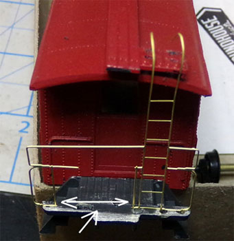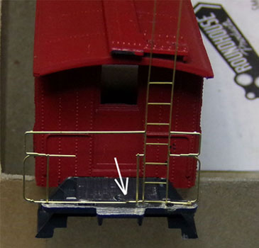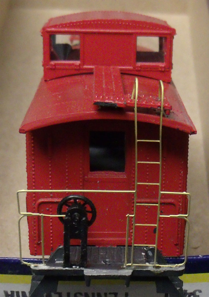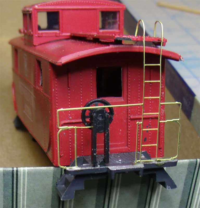 The “Brass Caboose End Railing” I used was broke along the bottom. The bottom railing was made only to support the casting, the real caboose did not have this. After testing this on the model I found this was in the way of the brake wheel stand.