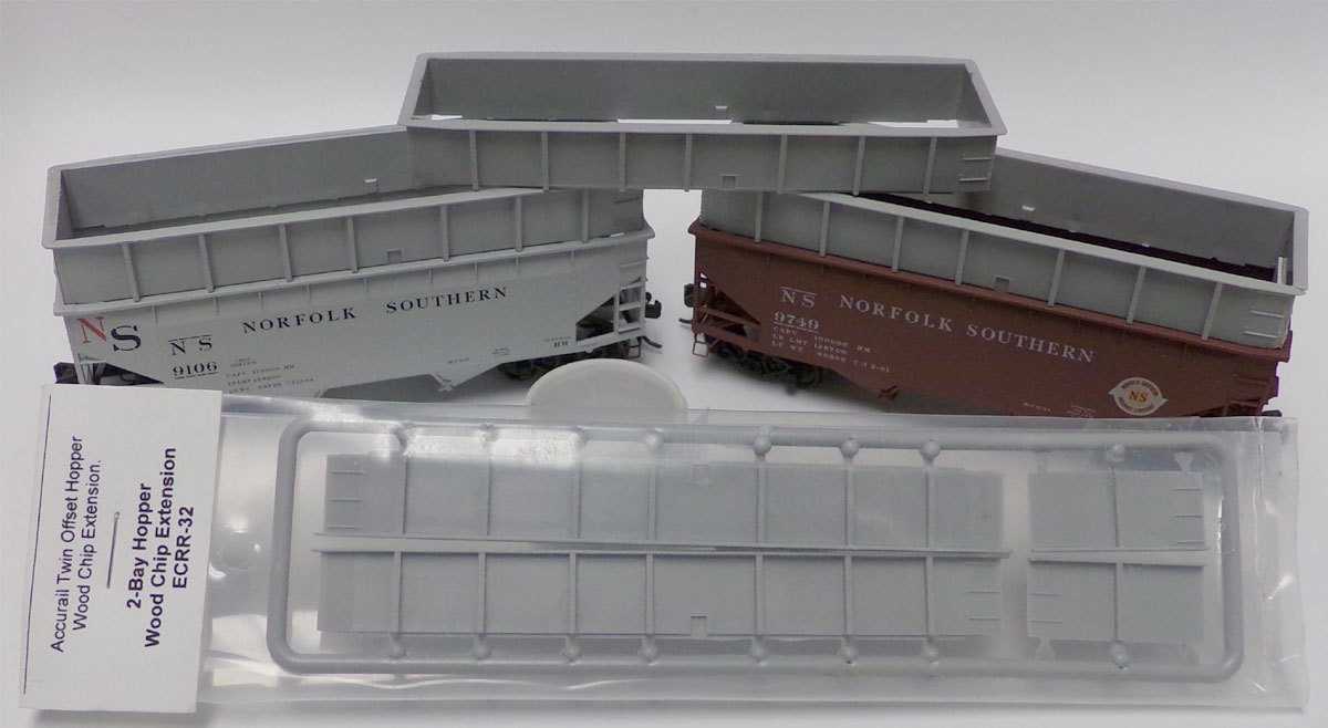 The ECRR-32 wood chip extension kit is made for the Accurail twin offset hopper. Price: $8.00 plus shipping